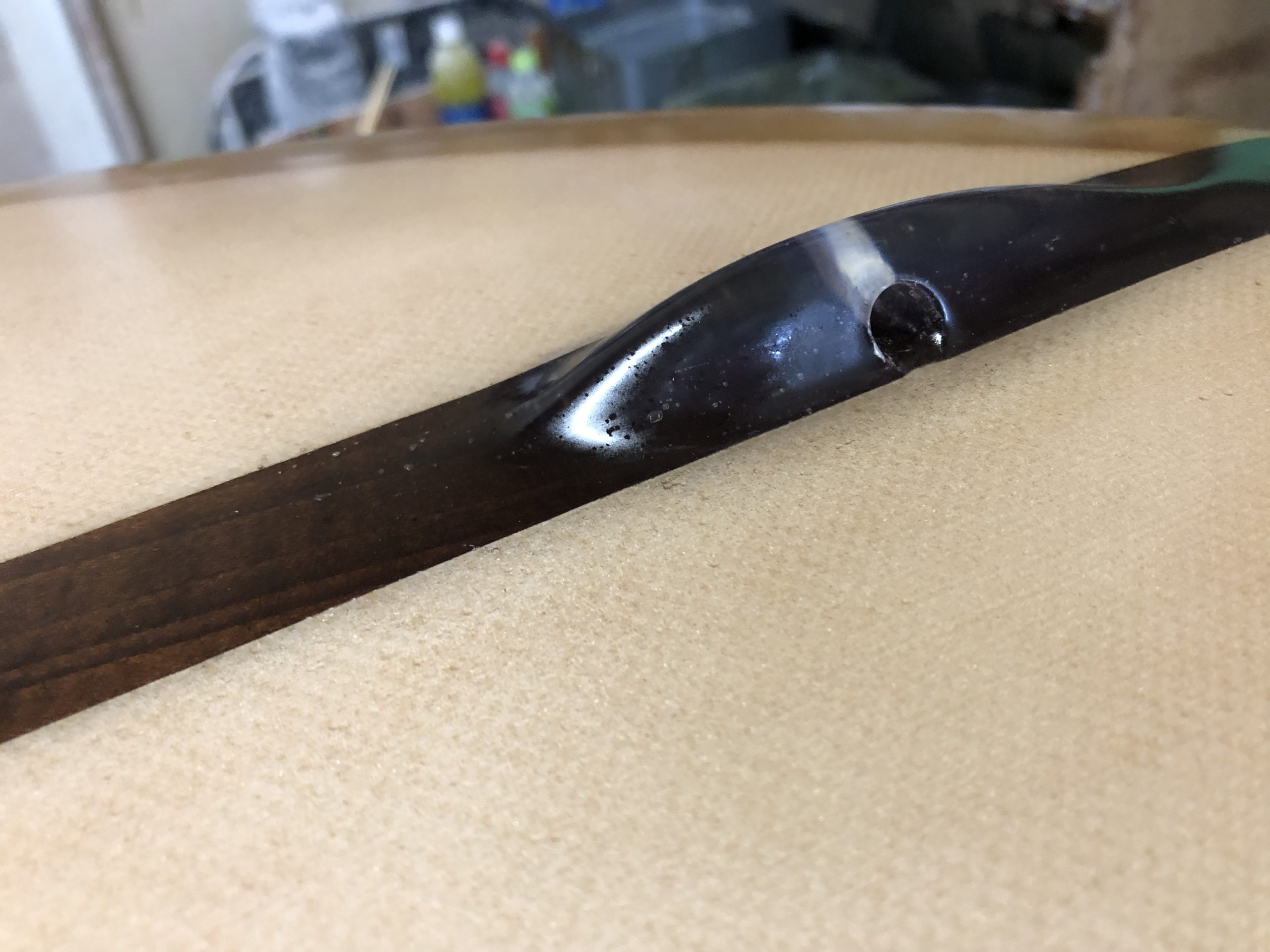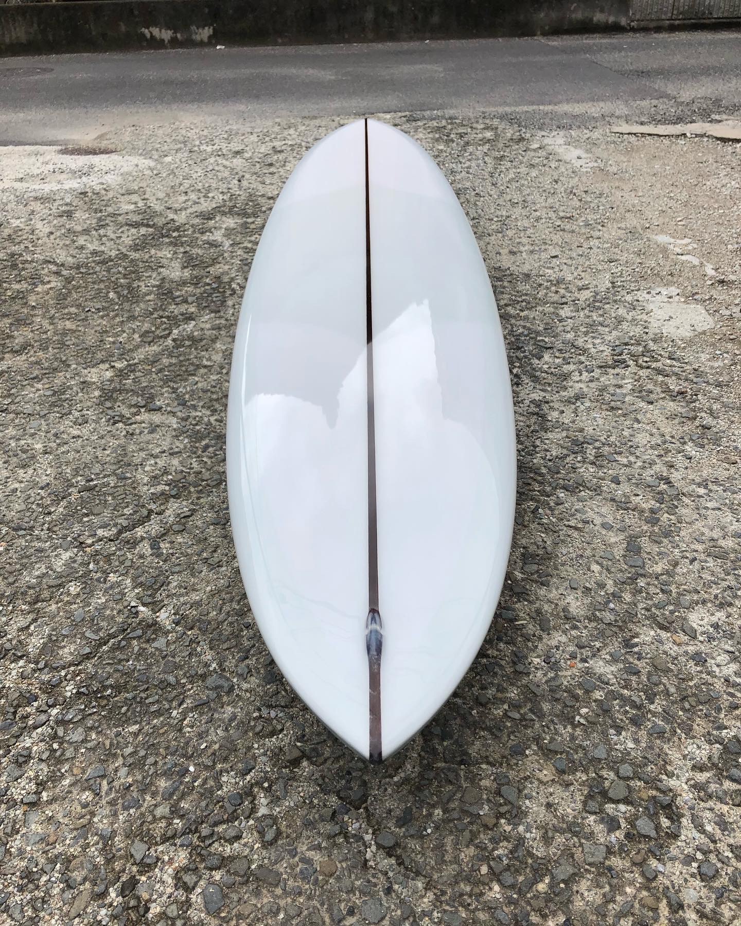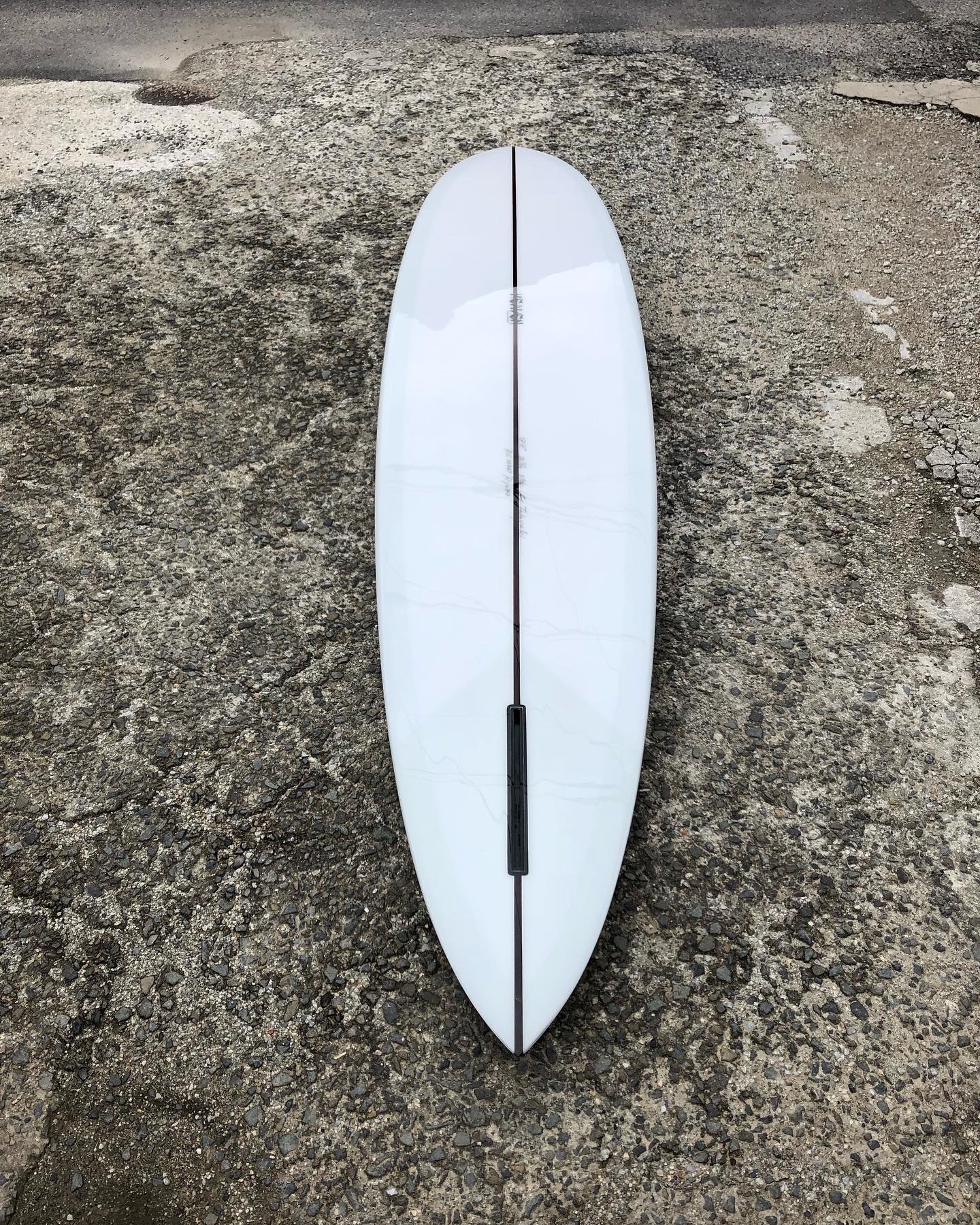 イーグルノーズ、テールはGUN、ロッカーはロングボード テールの薄さ、エッジ、ダウンレールのボリューム 8オンスボランで巻いた腕に感じる重み 調子はすこぶる良いそうだ スルスルと滑りだし、一番アウトのセットのいいやつをつかむことができるそうだ ガンのノーズロッカーではなく、ロングのノーズロッカーだからアベレージサイズの波では、こちらのロッカーの方が滑り出しは早いのだろう 乗れば、波に合わせているだけでどんどん走っていくのでコントロール性も高いとのこと
